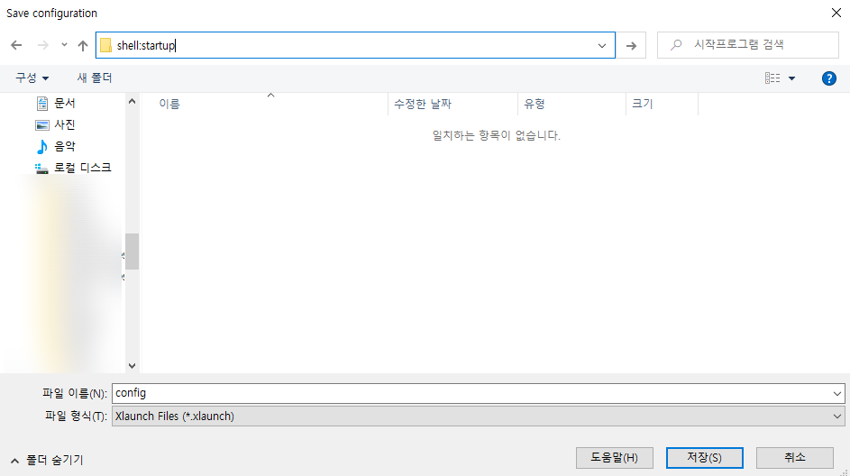 shell:startup을 입력하고 해당 디렉터리로 이동한 후 저장합니다.